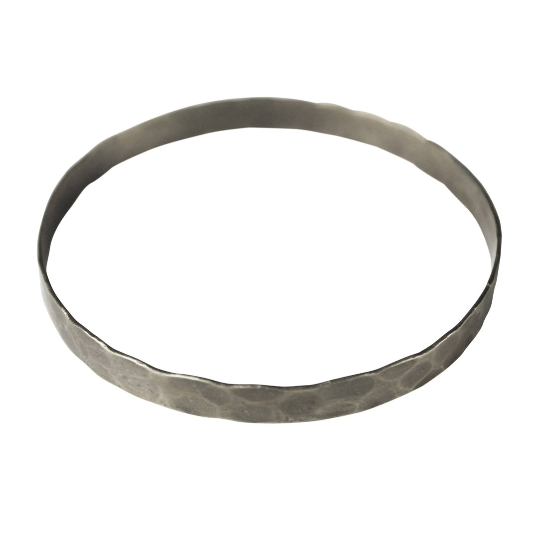 Simply perfect. Hammered rounds of undulating sizes create a go to layering statement for bangles.