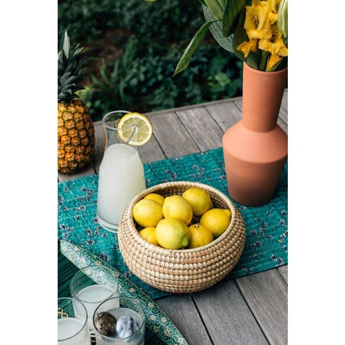 Sturdy coiled bowl in natural kaisa grass is hand-woven in Bangladesh. Great for a variety of home décor arrangements or as a gift basket. Kaisa is a wild grass used in Bangladeshi basket-making. A very sturdy grass, it dries from its natural light green to a very pale almost tan color.