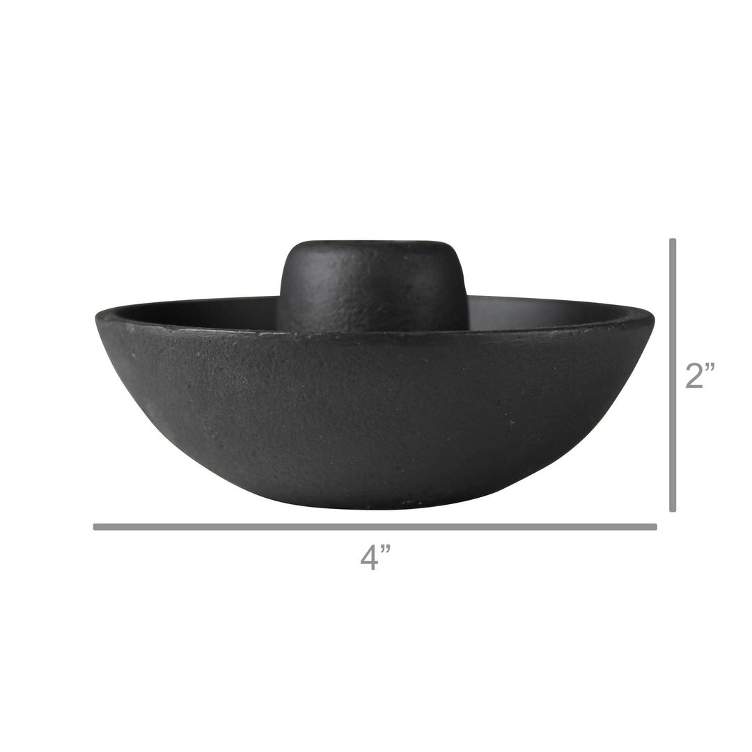 Crafted from cast iron, this taper holder features a deep bowl that exudes strength and beauty both when displayed alone and when grouped together. Enhance its outdoor functionality by placing a glass hurricane over it for added protection.